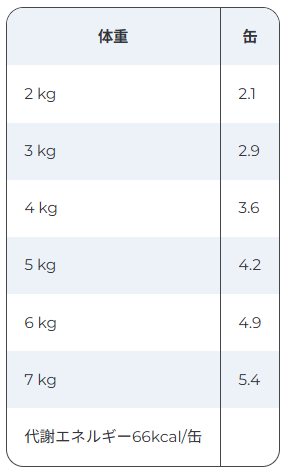 ※猫の状態・環境などにより異なります。給与量は目安ですので、獣医師の指示に従って給与してください。