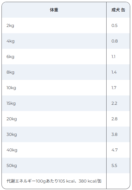 ※犬の状態・環境などにより異なります。給与量は目安ですので、獣医師の指示に従って給与してください。