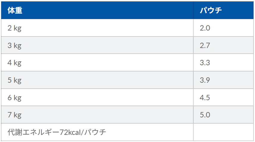※猫の状態・環境などにより異なります。給与量は目安ですので、獣医師の指示に従って給与してください。