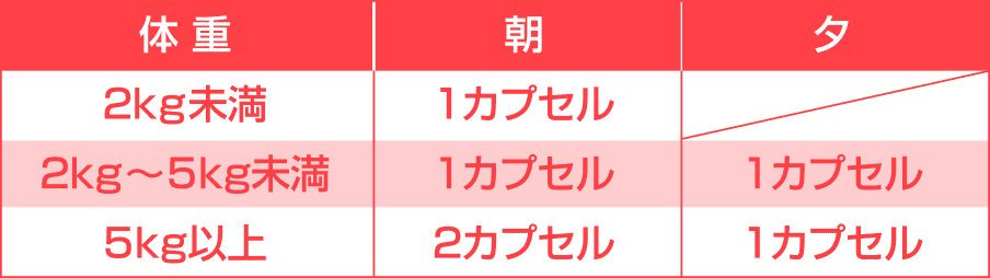 1日当たり下記の量を目安に、単独もしくは少量の食物と一緒に与えてください 。