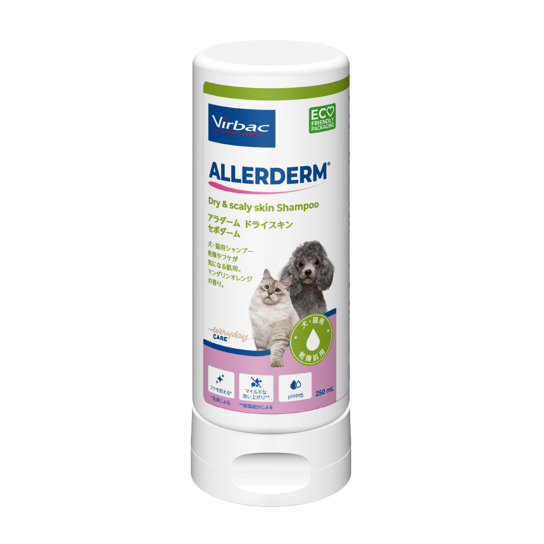- 地肌をマイルドに洗い上げ、余分なフケを洗い流すセボダームはフケが目立つペットにおすすめです。