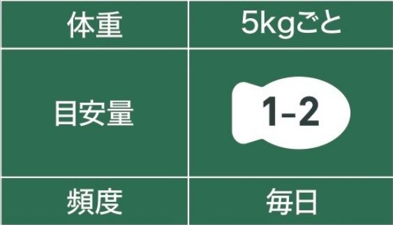 下の量を1日の目安に、そのまま、または食事と一緒に与えてください。