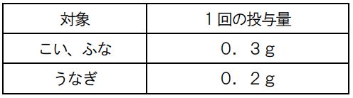 1回量として、飼育水1トン当たりトリクロルホンとして0.2~0.5gの量を均一に散布する。なお、必要に応じて2~3週間の間隔で反復散布する。